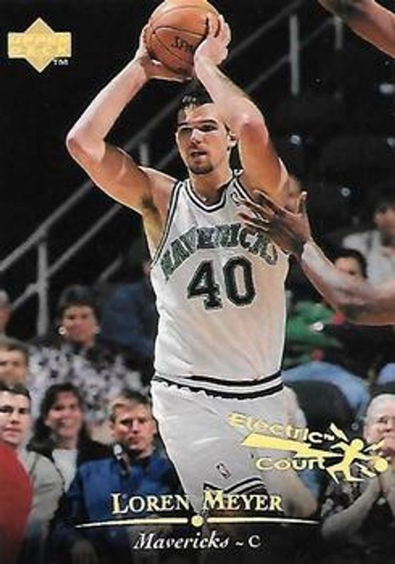 The Loren Meyer 1995 Upper Deck #279 Electric Court Gold Rookie card is 1 of 3 Loren Meyer's card variations in the 1995 Upper Deck set being tracked by Sports Card Investor, including Base, and Electric Court.