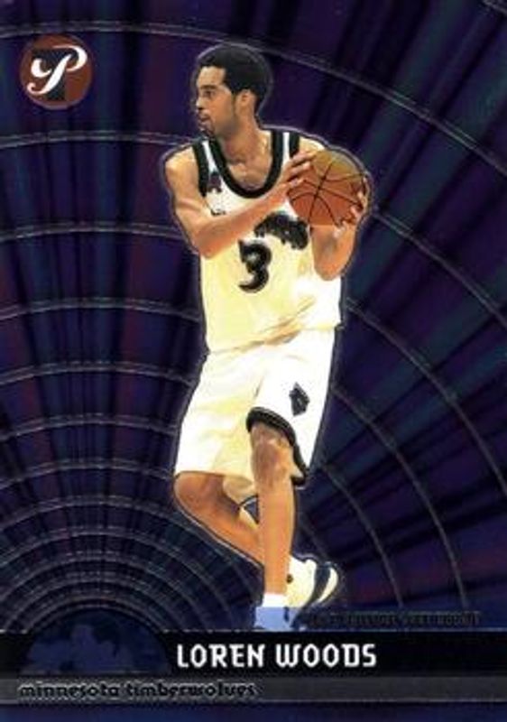 The Loren Woods 2001 Topps Pristine #98 Base Rookie card is 1 of 7 Loren Woods' card variations in the 2001 Topps Pristine set being tracked by Sports Card Investor, including #96 Base, #97 Base, #96 Refractor /50, #97 Refractor /50, and #98 Refractor /50.