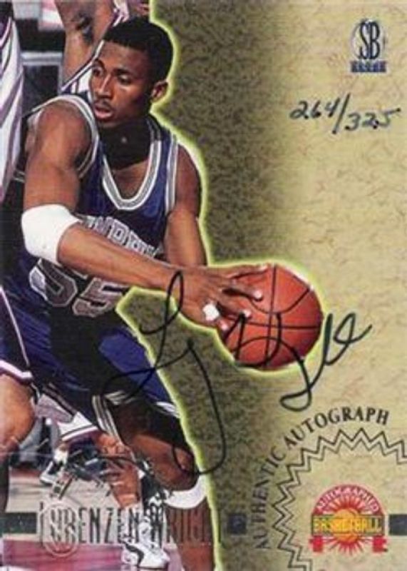 The Lorenzen Wright 1996 Score Board Autographed Autographs - Silver /325 Rookie card is 1 of 6 Lorenzen Wright's card variations in the 1996 Score Board Autographed set being tracked by Sports Card Investor, including Base, Autographs, Pure Performance, Pure Performance - Gold, and Autographs - Red /400.