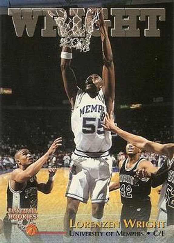 The Lorenzen Wright 1996 Score Board Rookies #10 Base card is 1 of 4 Lorenzen Wright's card variations in the 1996 Score Board Rookies set being tracked by Sports Card Investor, including Base, College Jerseys, and Rookie Die-Cut.