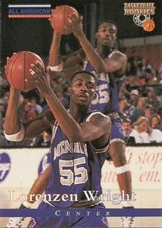 The Lorenzen Wright 1996 Score Board Rookies #89 Base card is 1 of 4 Lorenzen Wright's card variations in the 1996 Score Board Rookies set being tracked by Sports Card Investor, including Base, College Jerseys, and Rookie Die-Cut.