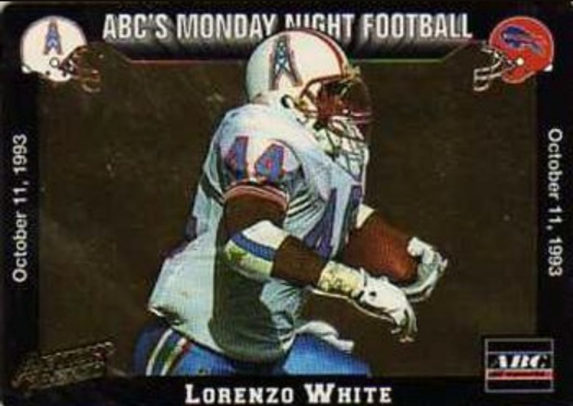 The Lorenzo White 1993 Action Packed Monday Night #22 Base card is 1 of 2 Lorenzo White's card variations in the 1993 Action Packed Monday Night set being tracked by Sports Card Investor, including Mint /250.
