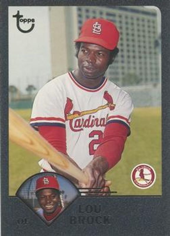 The Lou Brock 2003 Topps Retired Signature Edition #85 Black /99 card is 1 of 4 Lou Brock's card variations in the 2003 Topps Retired Signature Edition set being tracked by Sports Card Investor, including Base, Autographs, and Autographs - Refractor /25.