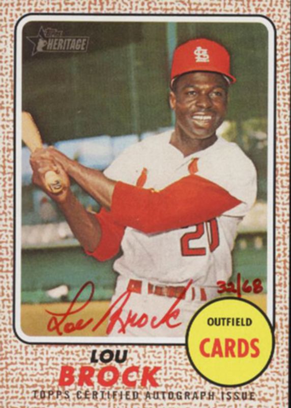 Lou Brock 2017 Topps Heritage #ROA-LBR Real One Autographs - Red Ink /68 RAW Price Guide