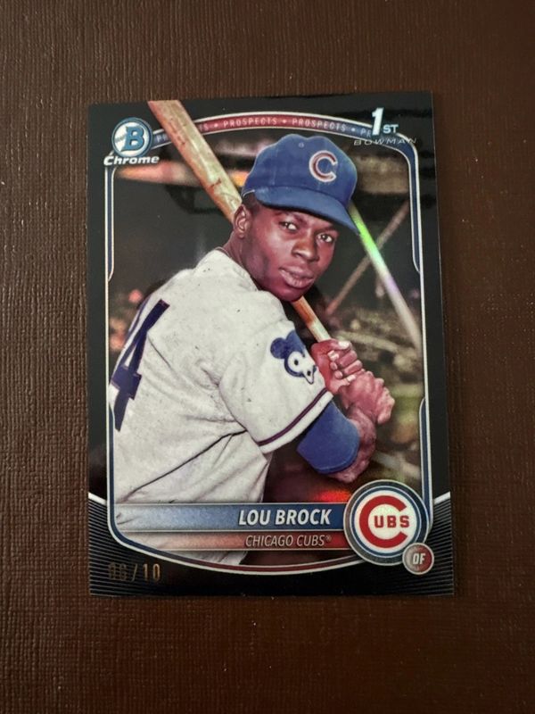 Auctions Ending Soon for Lou Brock 2025 Bowman Draft #BD-202 Chrome Retrofractor Variation - Black Refractor /10 (1st) RAW