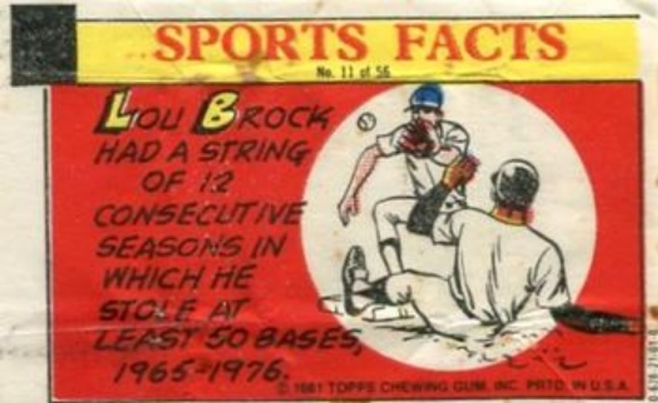 Lou Brock 1981 Topps Thirst Break #11 Base RAW Price Guide