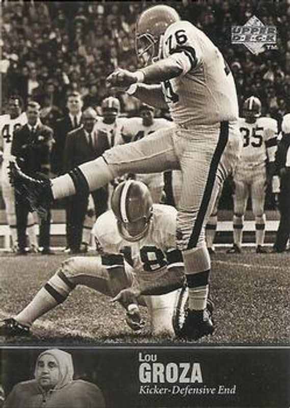 The Lou Groza 1997 Upper Deck Legends #37 Base card is 1 of 2 Lou Groza's card variations in the 1997 Upper Deck Legends set being tracked by Sports Card Investor, including Autographs.