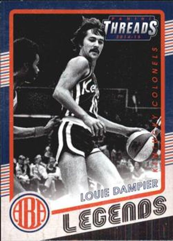 The Louie Dampier 2014 Threads #1 ABA Legends card is 1 of 4 Louie Dampier's card variations in the 2014 Threads set being tracked by Sports Card Investor, including ABA Legends - Century Proof Red /99, ABA Legends - Century Proof Gold /25, and ABA Legends - Century Proof Platinum /1.