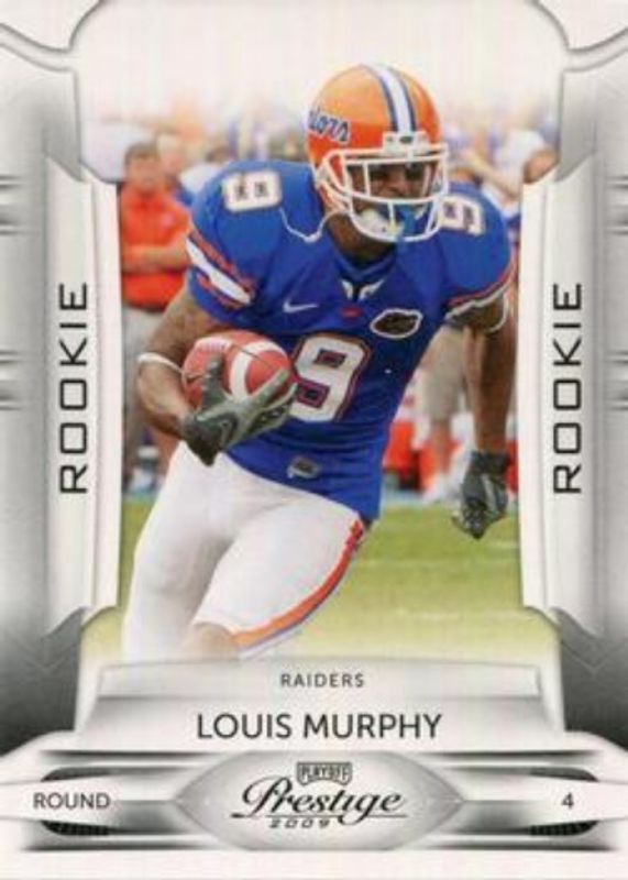 The Louis Murphy 2009 Playoff Prestige #169a Base Rookie card is 1 of 14 Louis Murphy's card variations in the 2009 Playoff Prestige set being tracked by Sports Card Investor, including Base, Xtra Points Orange /300, Xtra Points Gold /250, Xtra Points Red /100, and Xtra Points Purple /50.