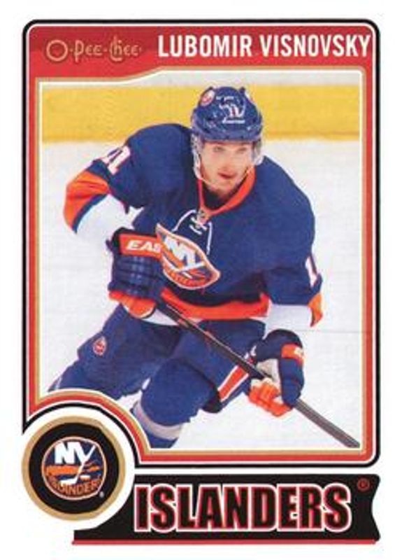 The Lubomir Visnovsky 2014 O-Pee-Chee #70 Base card is 1 of 6 Lubomir Visnovsky's card variations in the 2014 O-Pee-Chee set being tracked by Sports Card Investor, including Rainbow, Red, Retro, Retro Blank Backs, and Black Rainbow /100.