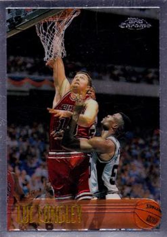 The Luc Longley 1996 Topps Chrome #164 Base card is 1 of 2 Luc Longley's card variations in the 1996 Topps Chrome set being tracked by Sports Card Investor, including Refractor.
