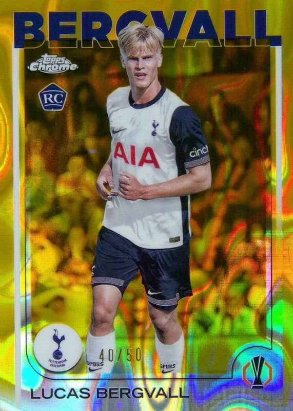 Lucas Bergvall 2024 Topps Chrome UEFA Club Competitions #112 Gold Lava Refractor /50 Rookie RAW Price Guide