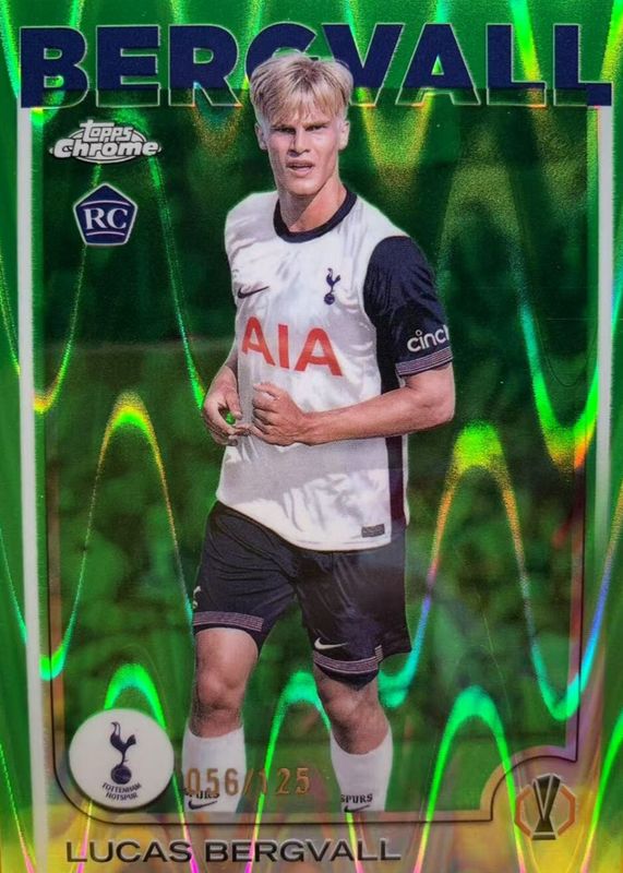 2024-25 Topps Chrome UEFA #112 Lucas Bergvall, Hotspur RC Green RayWave /125