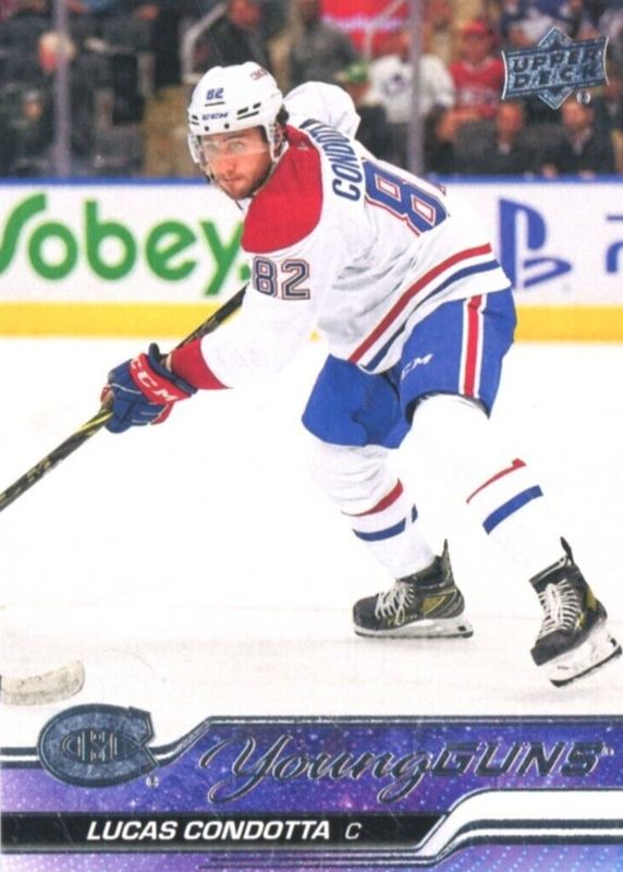 The Lucas Condotta 2023 Upper Deck #484 Young Guns Base Rookie card in Raw condition has moved down -$5.58 (-68.9%) in the last 30 days and was last sold for $2.52 .