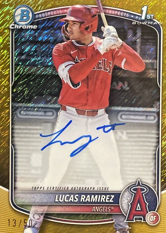 Auctions Ending Soon for Lucas Ramirez 2025 Bowman #CPA-LR Chrome Prospect Auto - Gold Shimmer Refractor /50 (1st) RAW