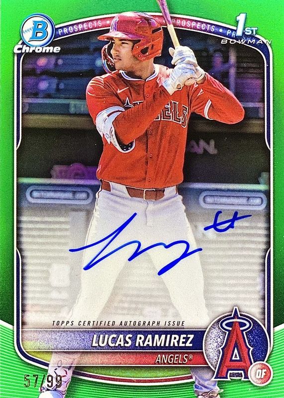 2025 1st Bowman Chrome Lucas Ramirez TRUE GREEN AUTO /99 RC Los Angeles Angels