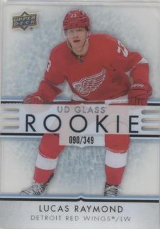 The Lucas Raymond 2021 Upper Deck Ovation #GR-30 UD Glass Rookies Achievement /349 card is 1 of 48 Lucas Raymond's card variations in the 2021 Upper Deck Ovation set being tracked by Sports Card Investor, including Base, Checkerboard, Gold Circular Wonder, Gold Foil, and Silver Foil.