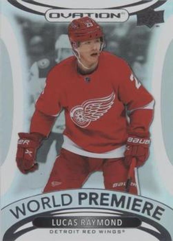 The Lucas Raymond 2021 Upper Deck Ovation #WP-19 World Premiere Rookie card is 1 of 48 Lucas Raymond's card variations in the 2021 Upper Deck Ovation set being tracked by Sports Card Investor, including Base, Checkerboard, Gold Circular Wonder, Gold Foil, and Silver Foil.