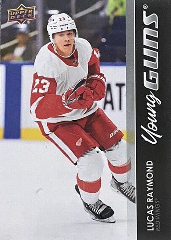 This card is 1 of 16 Lucas Raymond's card variations in the 2021 Upper Deck set being tracked by Sports Card Investor, including Young Guns Base, Young Guns Canvas, Young Guns - Clear Cut, Young Guns - Clear Cut Exclusives, and Young Guns - French.