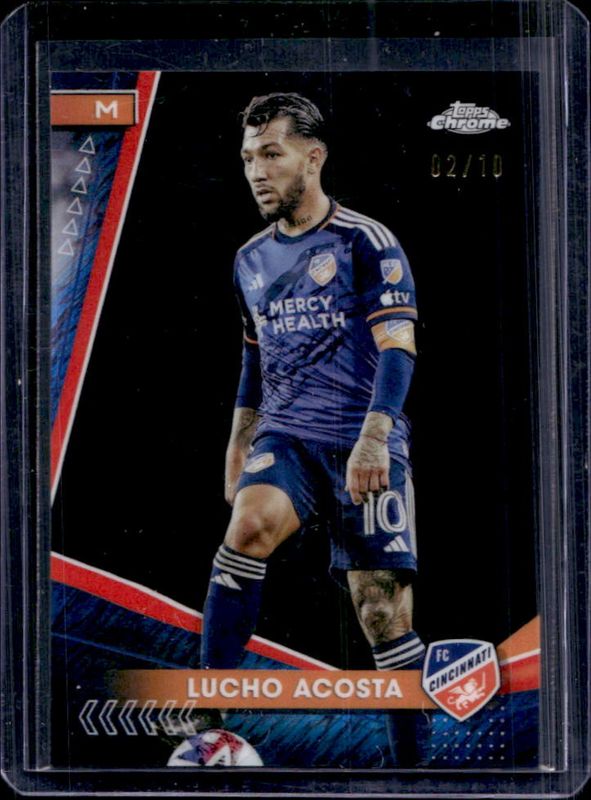The Lucho Acosta 2024 Topps Chrome MLS #1 Black Shimmer Refractor /10 card is 1 of 66 Lucho Acosta's card variations in the 2024 Topps Chrome MLS set being tracked by Sports Card Investor, including #1b Base, #1 Base, #1 Aqua Lava Refractor, #1 Gold Lava Refractor, and #1 Neon Green Lava Refractor.