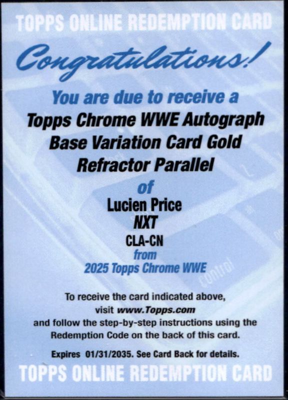 Lucien Price 2025 Topps Chrome WWE #CLA-CN Autographs - Gold Refractor /50 RAW Price Guide