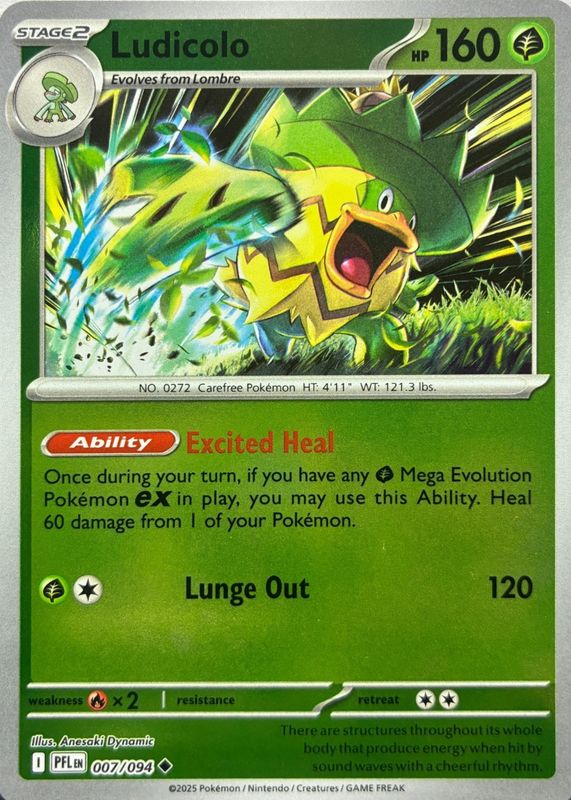 Ludicolo 2025 Mega Evolution: Phantasmal Flames #7/94 Base RAW TCG (LIGHTLY PLAYED) Price Guide