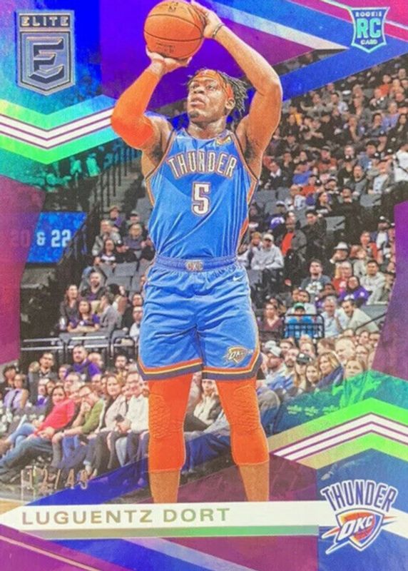 This card is 1 of 9 Luguentz Dort's card variations in the 2019 Elite set being tracked by Sports Card Investor, including Base /299, Base Rookie /299, Aspirations (/95), Red, and Status (/5).