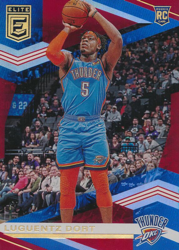 This card is 1 of 9 Luguentz Dort's card variations in the 2019 Elite set being tracked by Sports Card Investor, including Base /299, Base Rookie /299, Aspirations (/95), Status (/5), and Blue /99.