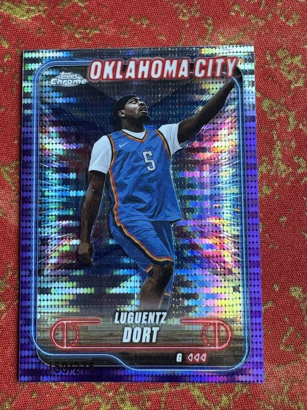 The Luguentz Dort 2024 Topps Chrome #74 Purple Sonar Refractor /275 card is 1 of 46 Luguentz Dort's card variations in the 2024 Topps Chrome set being tracked by Sports Card Investor, including Base, Blue Basketball Refractor, Magenta Refractor, Negative Refractor, and Pink Basketball Refractor.