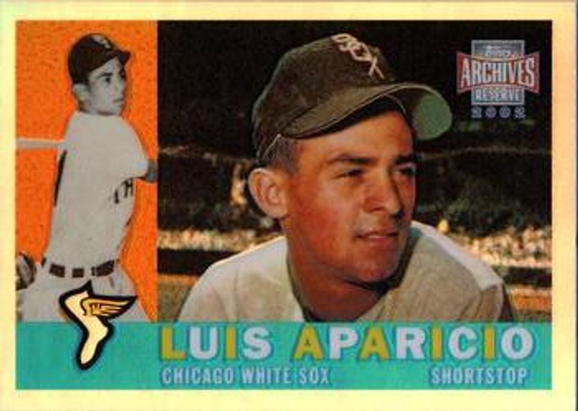 The Luis Aparicio 2002 Topps Archives Reserve #29 Base card is 1 of 3 Luis Aparicio's card variations in the 2002 Topps Archives Reserve set being tracked by Sports Card Investor, including Autographed Baseballs, and Autographs.