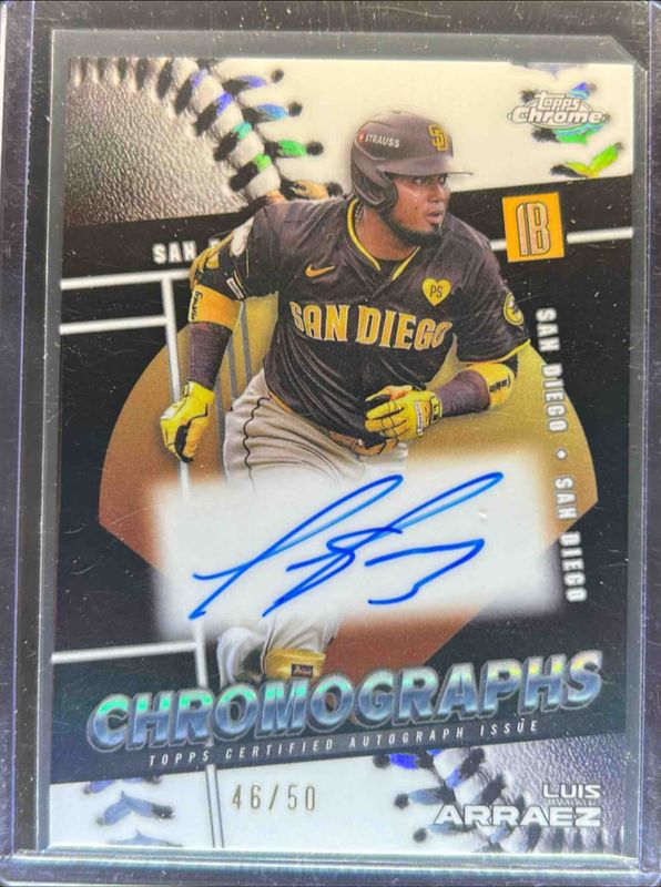 The Luis Arraez 2025 Topps Chrome #CHR-LAR Chromographs card is 1 of 70 Luis Arraez's card variations in the 2025 Topps Chrome set being tracked by Sports Card Investor, including Base, Geometric Refractor, Image Variation, Lightboard Logo Variation, and Negative Refractor.