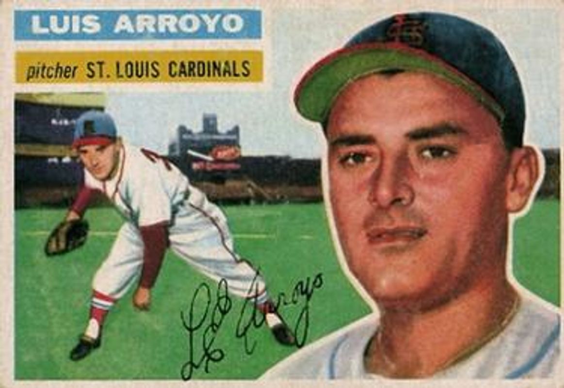 The Luis Arroyo 1956 Topps #64b Base Rookie card is 1 of 2 Luis Arroyo's card variations in the 1956 Topps set being tracked by Sports Card Investor, including Base.