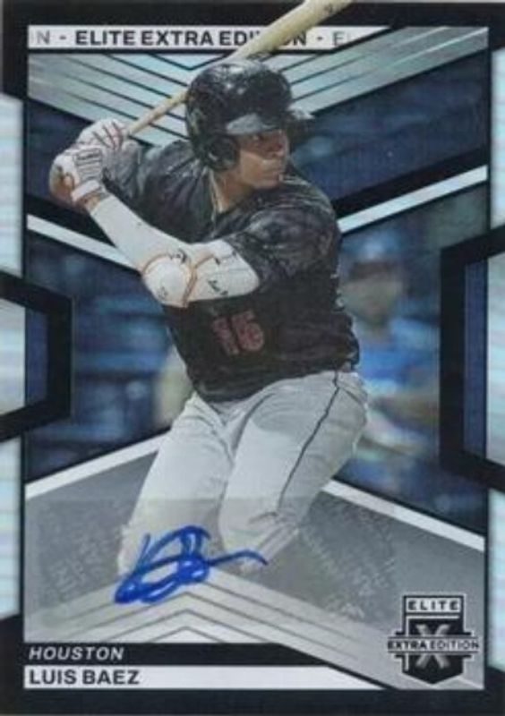 The Luis Baez 2023 Elite Extra Edition #118 Signatures card is 1 of 39 Luis Baez's card variations in the 2023 Elite Extra Edition set being tracked by Sports Card Investor, including Base, Pink, Status Green /499, Signatures die-cut /399, and Aspirations Blue /349.