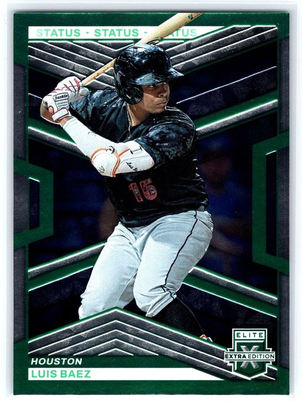 The Luis Baez 2023 Elite Extra Edition #118 Status Green /499 card is 1 of 39 Luis Baez's card variations in the 2023 Elite Extra Edition set being tracked by Sports Card Investor, including Base, Pink, Signatures, Signatures die-cut /399, and Aspirations Blue /349.