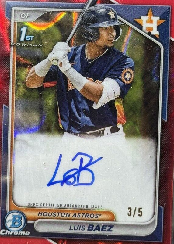 Auctions Ending Soon for Luis Baez 2024 Bowman #CPA-LB Chrome Prospect Auto - Red Lava Refractor /5 (1st) RAW