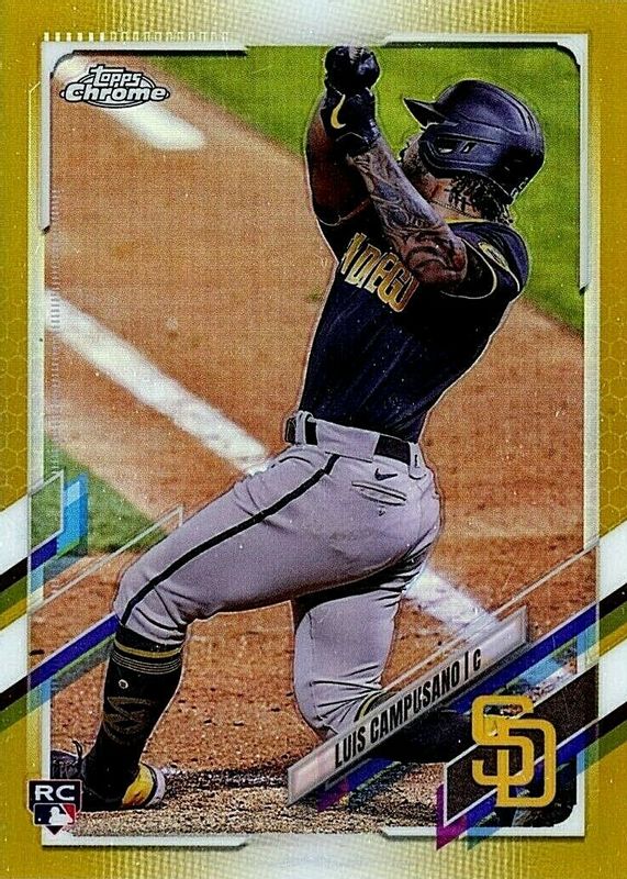 The Luis Campusano 2021 Topps Chrome #135 Gold Refractor /50 Rookie card in Raw condition has not changed in price in the last 30 days and was last sold for $5.00 .