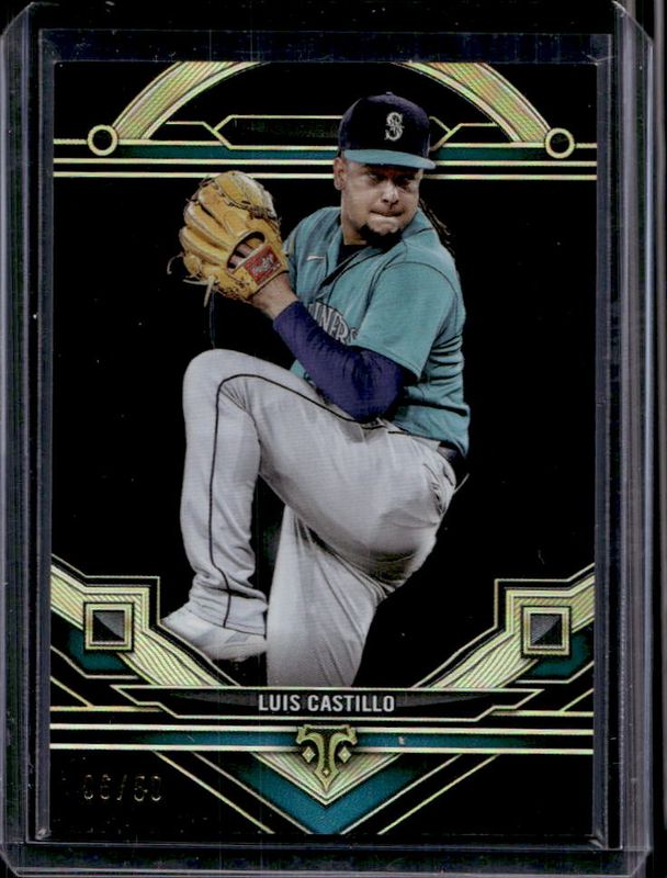 The Luis Castillo 2024 Topps Triple Threads #106 Onyx /50 card is 1 of 42 Luis Castillo's card variations in the 2024 Topps Triple Threads set being tracked by Sports Card Investor, including Base, Amber /199, Aquamarine /149, Tourmaline /125, and Gold /99.