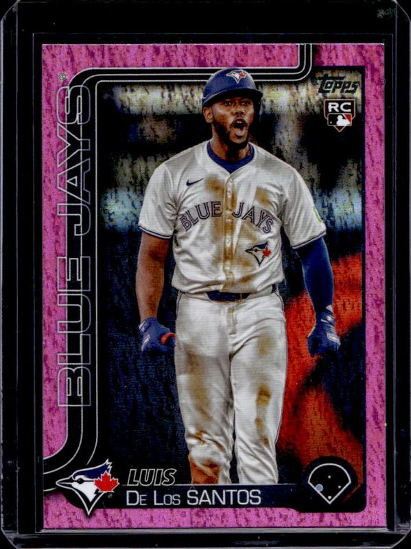 The Luis De Los Santos 2025 Topps #13 Pink Holo Foil Rookie card is 1 of 62 Luis De Los Santos' card variations in the 2025 Topps set being tracked by Sports Card Investor, including Base, Aqua Holo Foil, Diamante Foil, Holo Foil, and Pink Diamante Foil.