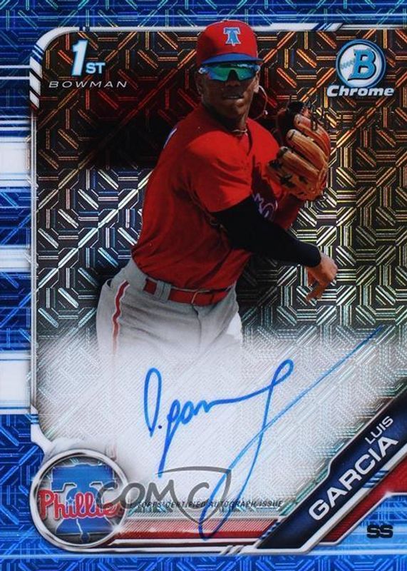 Best Prices Available For Sale of Luis Garcia (Phillies) 2019 Bowman Chrome #CPA-LG Prospect Auto - Choice Refractor /150 (1st)