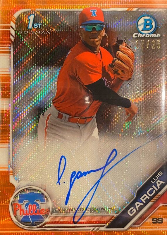2019 LUIS GARCIA Bowman Chrome AUTO 1st ORANGE WAVE REFRACTOR /25 Phillies