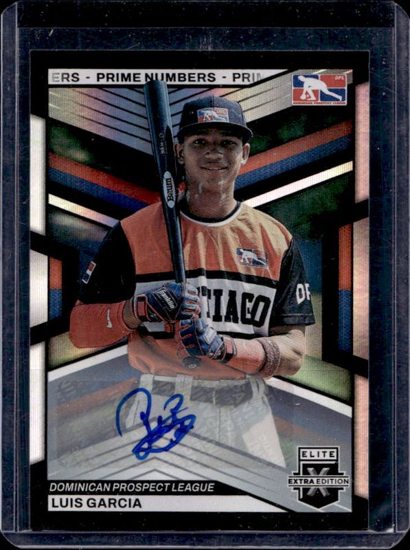 The Luis Garcia (Phillies) 2023 Elite Extra Edition #193 Prime Numbers A Signatures /200 card is 1 of 48 Luis Garcia (Phillies)'s card variations in the 2023 Elite Extra Edition set being tracked by Sports Card Investor, including Base, Pink, Signatures, Status Green /499, and Signatures die-cut /399.