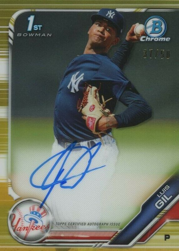 2019 BOWMAN CHROME LUIS GIL AUTO 37/50 GOLD REFRACTOR NY YANKEES- ROY Winner!