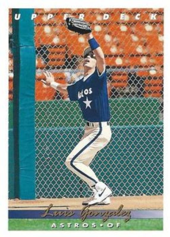 The Luis Gonzalez 1993 Upper Deck #572 Base card is 1 of 2 Luis Gonzalez's card variations in the 1993 Upper Deck set being tracked by Sports Card Investor, including Gold Hologram.