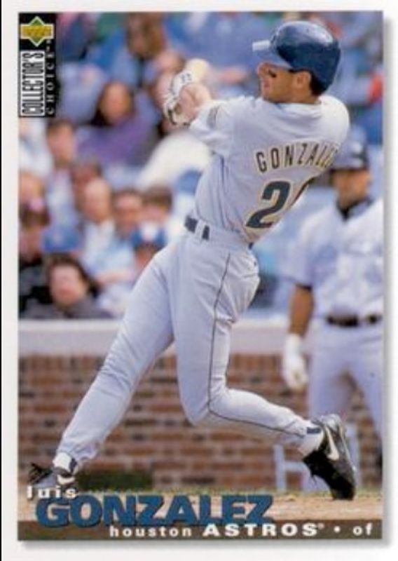The Luis Gonzalez 1995 Upper Deck Collector's Choice #110 Base card is 1 of 3 Luis Gonzalez's card variations in the 1995 Upper Deck Collector's Choice set being tracked by Sports Card Investor, including Gold Signatures, and Silver Signatures.