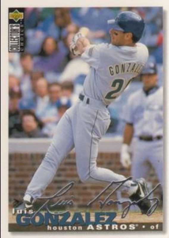 The Luis Gonzalez 1995 Upper Deck Collector's Choice #110 Silver Signatures card is 1 of 3 Luis Gonzalez's card variations in the 1995 Upper Deck Collector's Choice set being tracked by Sports Card Investor, including Base, and Gold Signatures.