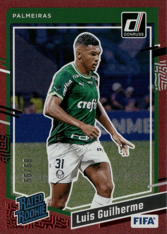 2023 Donruss Soccer Luis Guilherme Red Sparkle 97/99 Rated Rookie RC Palmeiras