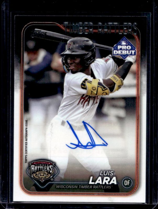 The Luis Lara 2024 Topps Pro Debut #PD-13 Base Autographs card is 1 of 44 Luis Lara's card variations in the 2024 Topps Pro Debut set being tracked by Sports Card Investor, including Base, Fuchsia Foil /199, Sparkle Foil /175, Blue Foil /150, and Green Foil /99.