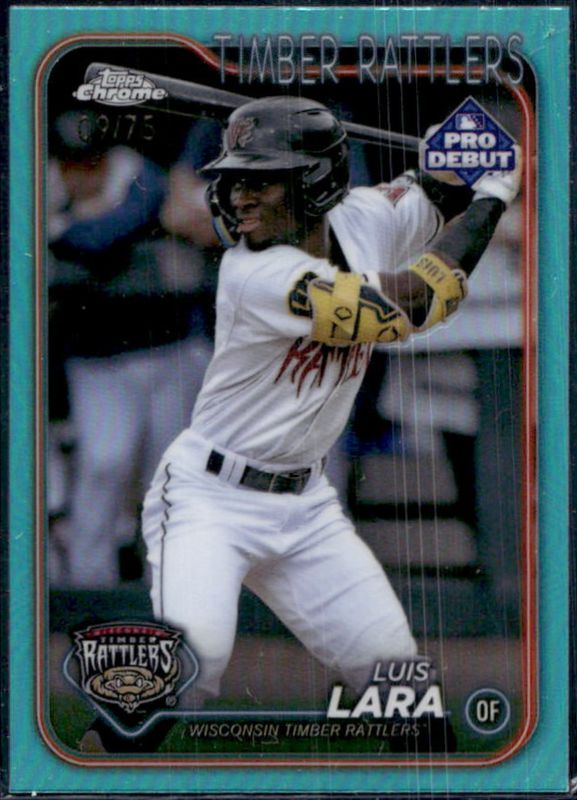 The Luis Lara 2024 Topps Pro Debut #PDC-13 Chrome - Aqua Refractor /75 card is 1 of 44 Luis Lara's card variations in the 2024 Topps Pro Debut set being tracked by Sports Card Investor, including Base, Fuchsia Foil /199, Sparkle Foil /175, Blue Foil /150, and Green Foil /99.