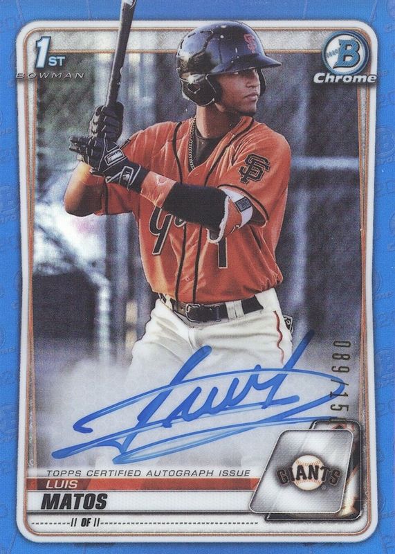 Luis Matos 2020 Bowman 1st Chrome Blue Refractor Autograph 018/150