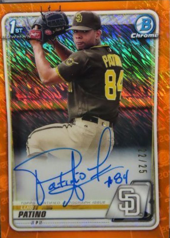Luis Patino 2020 Bowman #CPA-LP Chrome Prospect Auto - Orange Shimmer Refractor /25 (1st) RAW Price Guide